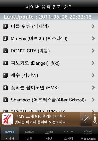 ┇A.S★110507推荐┇一个可以即时查询韩音源榜排名的iPhone App