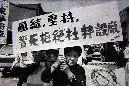 1985年8月,美国杜邦公司决定投资在彰滨工业区生产二氧化钛。见诸报端之后,当地居民反弹强烈。陈情书称杜邦公司申请了面积高达六十公顷的土地,绝非仅生产二氧化钛,将来不排除生产高危险化学物品,并声称将会对当地环境造成污染。引发反对杜邦至彰化设厂行动。