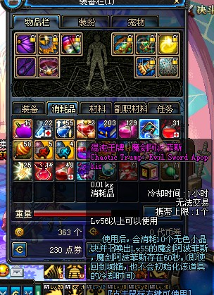 持续时间60秒,冷却时间1小时。一般一个号刷完PL也就两个小时。也就意味着,魔剑卡一天只能用2分钟。就算是每天可以F1秒,但2分钟的使用限制也不给力吧!