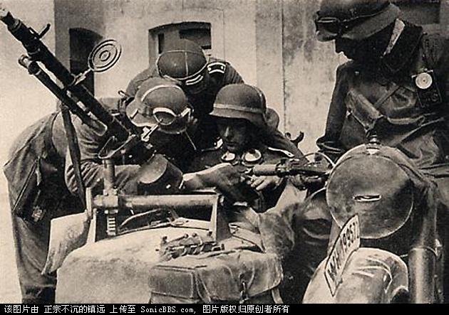不对呀,我看过很多的德国摩托都这样,再说车上的机枪能抬那么高吗,怎么防空呀!