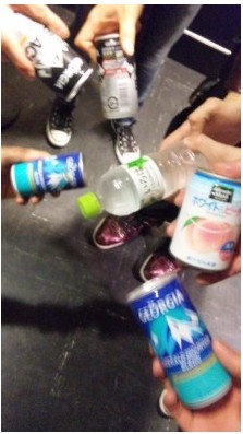 我和DuelJewel 的shun、后藤先生、RISKY的工作人员、鋲、和己、RUI一起玩了果汁猜拳。