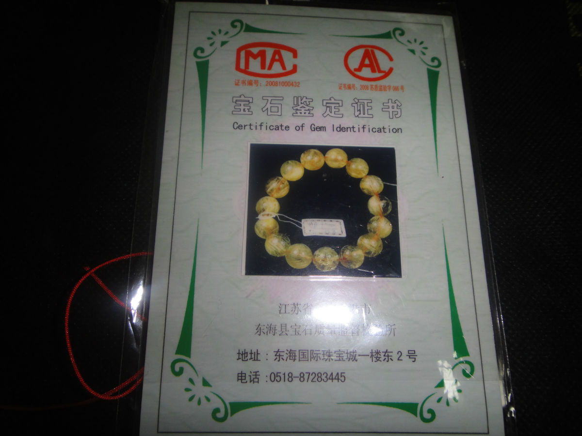 是卖家鉴定的,卖手链的时候附赠的同款手链鉴定书