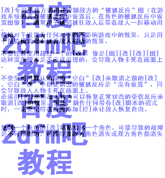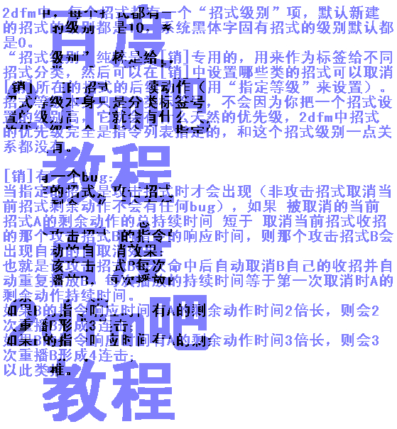 概述:2dfm中的方格脚本,数角色招式中使用的种类最多,这些脚本的多样,造成了一个最基本的客观情况:2dfm游戏的制作中技术含量最高的内容都在角色招式这个领域内,可以说,用好这些各方格脚本就等于掌握了2dfm的核心。
