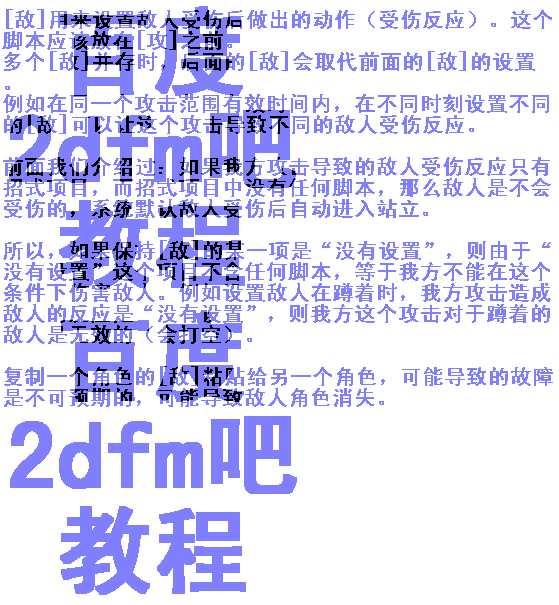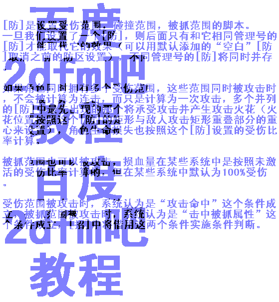 本文仅介绍2dfm即2d格斗制作大师(工具)中角色招式可能用到的所有方格脚本的工作原理和使用注意事项,并提供一些最常见的应用例子
