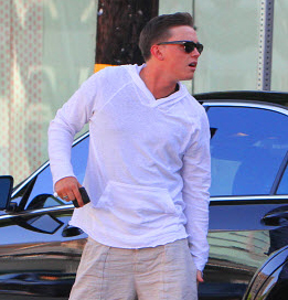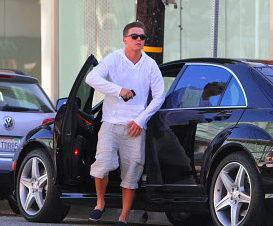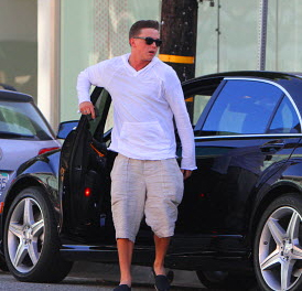 话说他从车里走出来的动作有点好笑~~