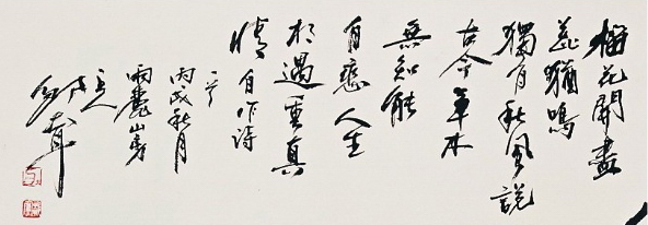 丁芒先生一直主张:“画家必善通诗韵,能自作更好.诗画之境相通,由情所至,境由心生,亦可互补也”.“诗画本同源而异流,却又殊途而同归.是注入作者情感的之物象---意象”,中国诗画有异曲同工之妙,这些话是非常有道理地.