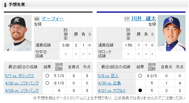 【中日】vs【ロッテ】