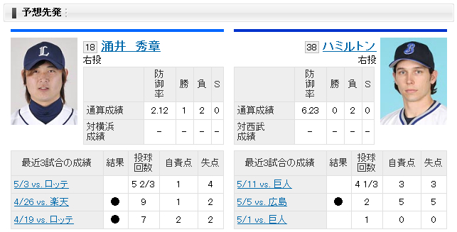 ハミルトンvs涌井