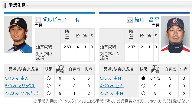 【ヤクルト】vs【日本ハム】