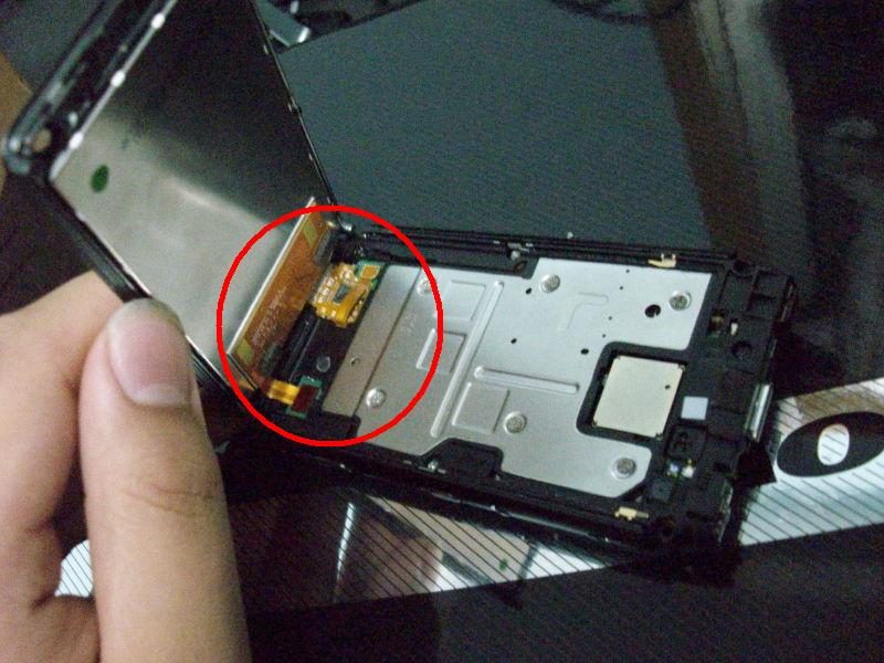 拆下屏幕,箭头处有暗扣,下方有排线,应从听筒出向上抬起