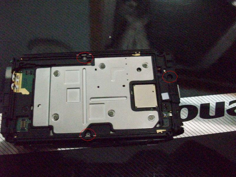 用T6螺丝刀卸下固定中板的三颗螺丝(红圈)
