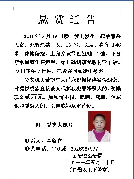 如果知道线索情立即专告受害者家里………别的不说全当为了孩子,如今的和谐太……………