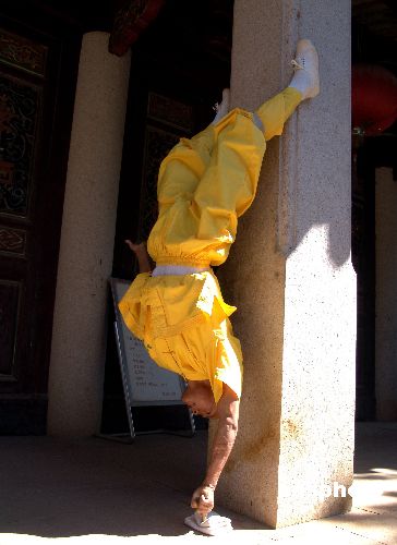 这个叫一指禅?真正的二指禅和一指禅是两脚悬空的,这张图片上和尚靠两个脚夹住柱子可以分担一部分压力,我见过一个十多岁的小孩可以双脚悬空支撑5秒左右,那个才应该是真正的二指禅,像昨天那个两脚靠在墙上而且是双手支撑怎么能叫二指禅??