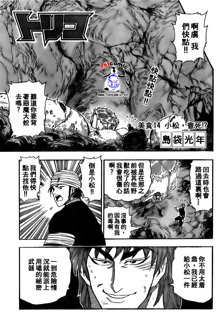 刚开始看以为小松只是这部漫画的一个路人角色,长相平凡到有点对不起看多了二次元中美型人物的我,鳄鱼篇真实的画出了小松的胆小(被阿虏给吓到失禁),这样的角色实在没有容易让人遗忘,金刚猩篇对于小松的印象还没有改变,还是认为他只是个无足轻重的配角,但是开始期待他与阿虏的冒险,开始期待他的戏份,一个完全没有亮点的角色,他会如何发展?开始喜欢上小松,这个完全没有热血漫激情没有平常漫画主配角迷人外貌的矮个大叔,一个很容易让人遗忘的长相。