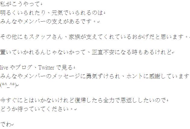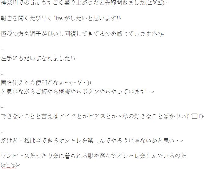 ちあきはまだライブには复帰できてないから、いつも応援してくれてる皆や、これからライブに参加する皆には心配をかけてしまってごめんなさい。