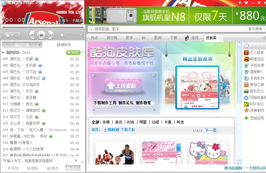 哪位心灵手巧的童鞋做个简洁美观的阿森纳酷狗音乐皮肤吧~~~