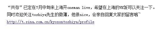 【消息】日本indies乐队共存7月上海LIVE