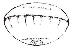 在这整个过程中,从第一次的接触到后续我的拦截计划里,那个物体有好几次跟我的距离非常贴近,其距离近到我能证明它是由两个半圆形组合而成,形状就像两个紧密相合的头顶骨。我仔细观察下方的半圆,它介于红色和棕色之间,中央似乎有个洞或暗点。中央的传送带看起来彷佛有某种网格,可能还有一些灯光,关于这个部分的细节因为太阳太亮,反光看不清楚,而难以辨别。