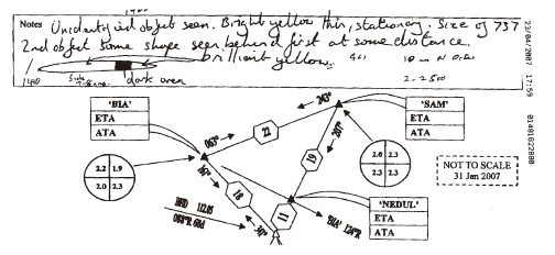 它只是瞬间飞离,向辛特拉山和大海的方向飞去。这一切发生得太快,我根本来不及操控我的飞机试着闪躲那个物体。而这整个震撼的过程,其中一位飞行员全程目击。