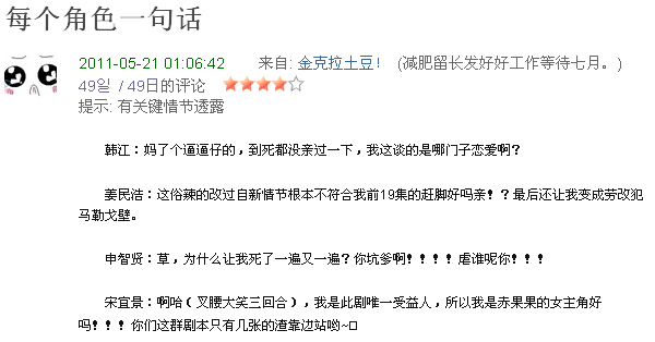 110526┊转载┊苦逼的韩江~~~每个角色一句话