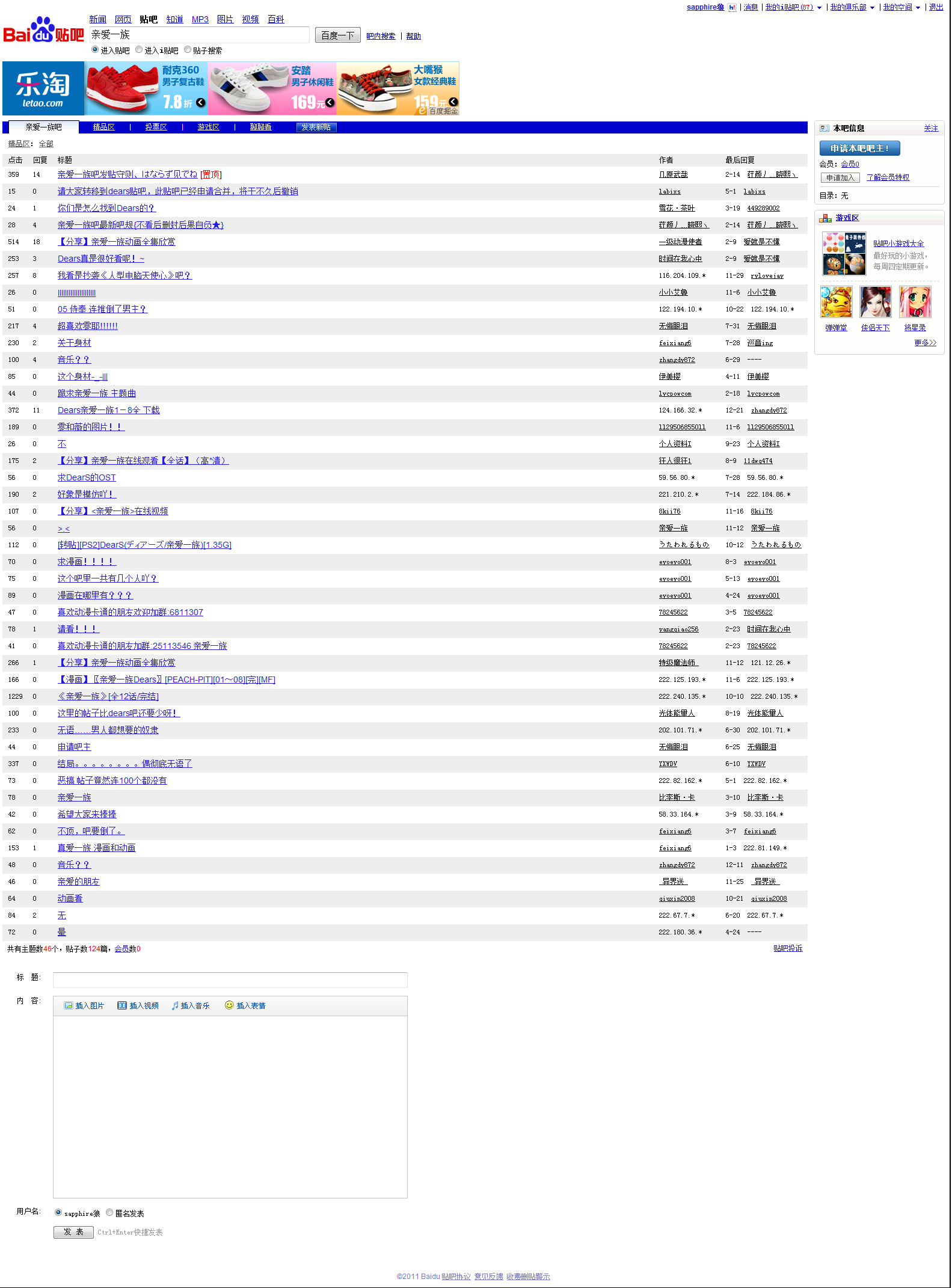 这是小狼之前截的亲爱一族贴吧的页面,已经成为历史了