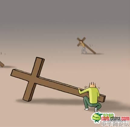 他心想:这个十字架实在是太沉重了,就这样背着它,得走到何年何月啊?!