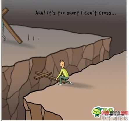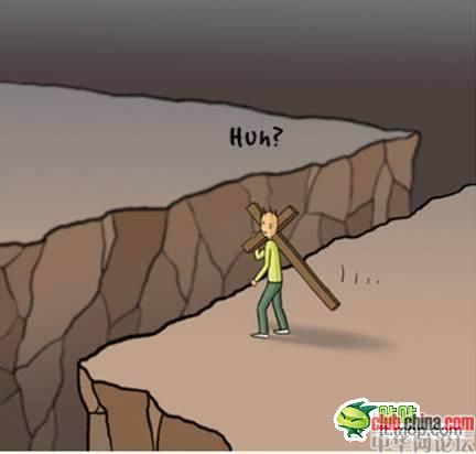 走着走着,谁料,前边忽然出现了一个又深又宽的沟壑!沟上没有桥,周围也没有路。
