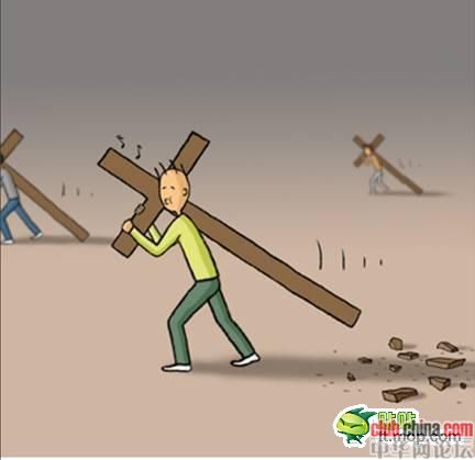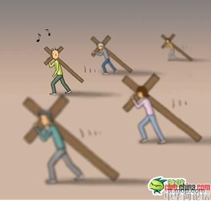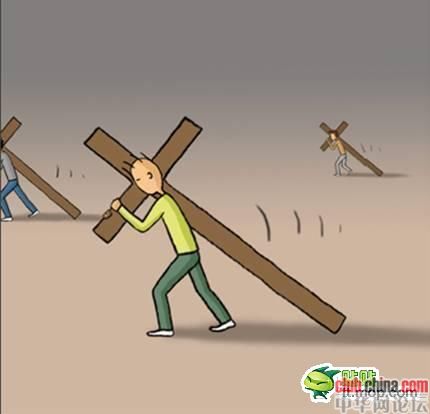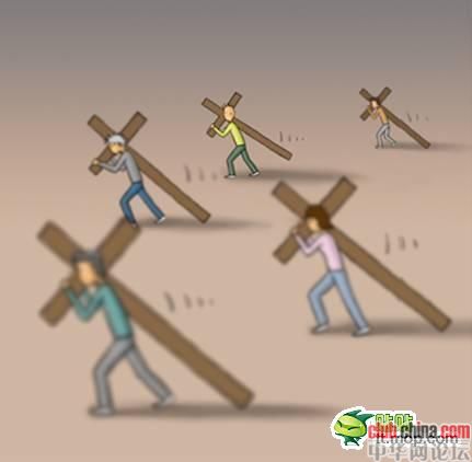 每个人都背负着一个沉重的十字架,在缓慢而艰难地朝着目的地前进