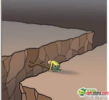 走着走着,谁料,前边忽然出现了一个又深又宽的沟壑!