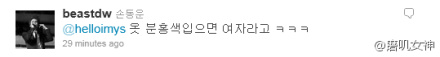110527-【东云to耀燮:穿粉红色的话就会被说是女孩子ㅋㅋㅋ】拜托你直接跟他讲!!而且人家已经下线了XDDDDDDD