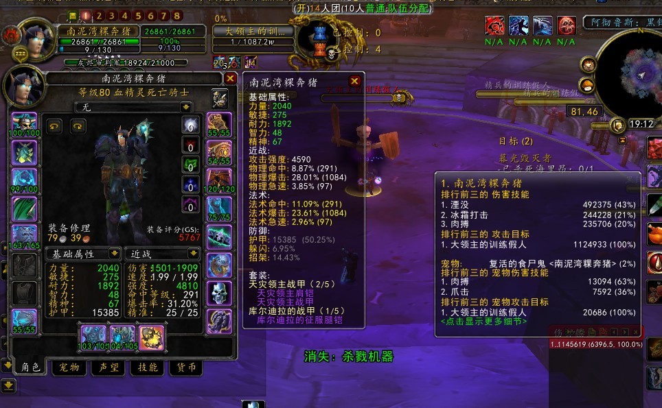蘑菇属性报告:死亡骑士 GS=5767,天赋:冰霜(0/53/18) 备用:鲜血(56/5/10),装备等级:256,26861生命,4810强度,291命中,31.2%爆击,25精准,37.3%护甲穿透