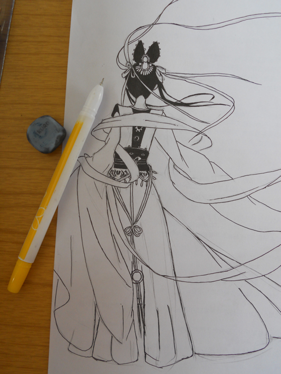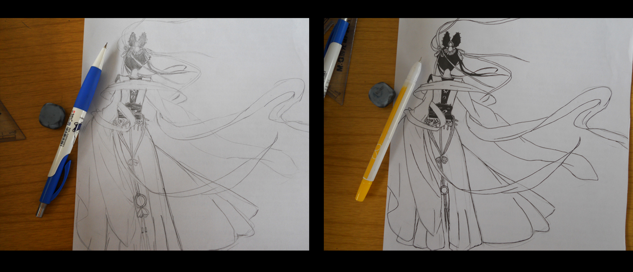 大图,可点开,铅笔稿和描线后