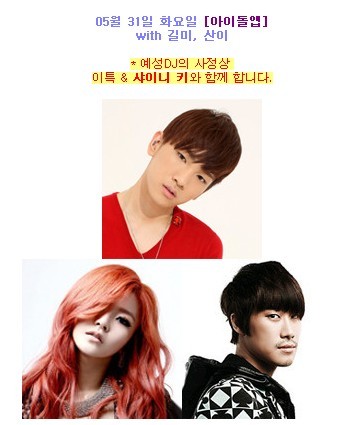 【周二DJ】:艺声DJ有日程缺席 因此由SHINee的Key和利特DJ一起主持周二的节目~