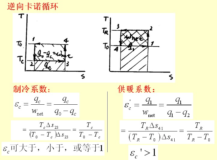 上述逆卡诺循环热泵能效比应该是错误的,是不是应该修改为: