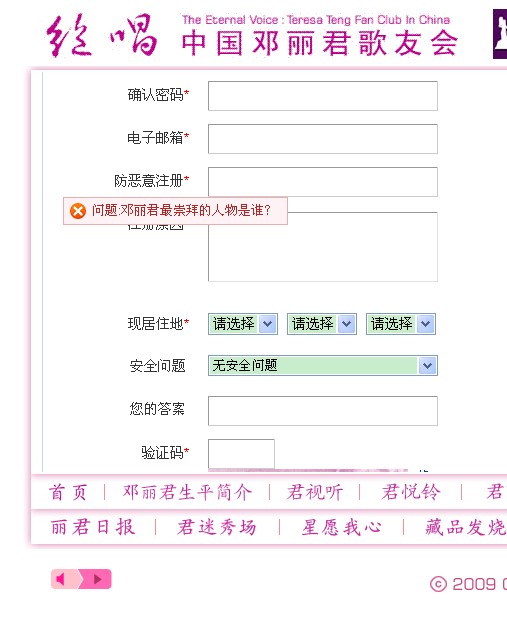 你说的很有道理,但是在邓丽君中国歌友会论坛注册是必须要正确回答这个问题才行的