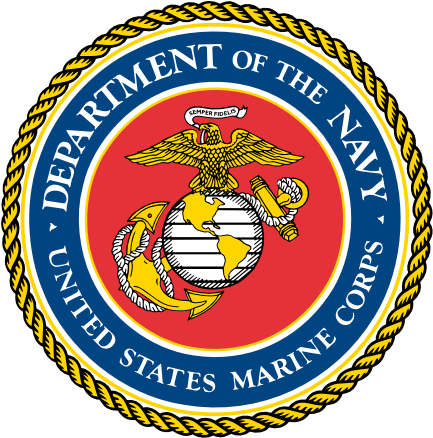 这个会徽是一个鲜红的背景上显示带有深蓝色印有两句“Department of the Navy”以上“United States Marine Corps”的白色字母下面带包围,整个边框有金绳点缀。