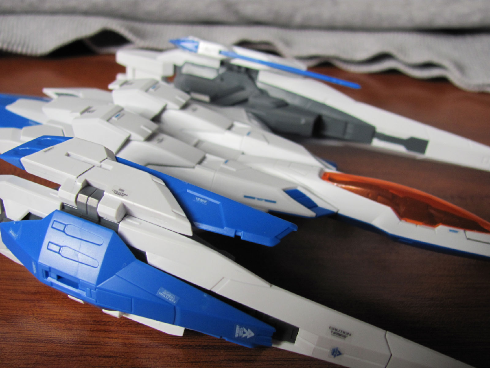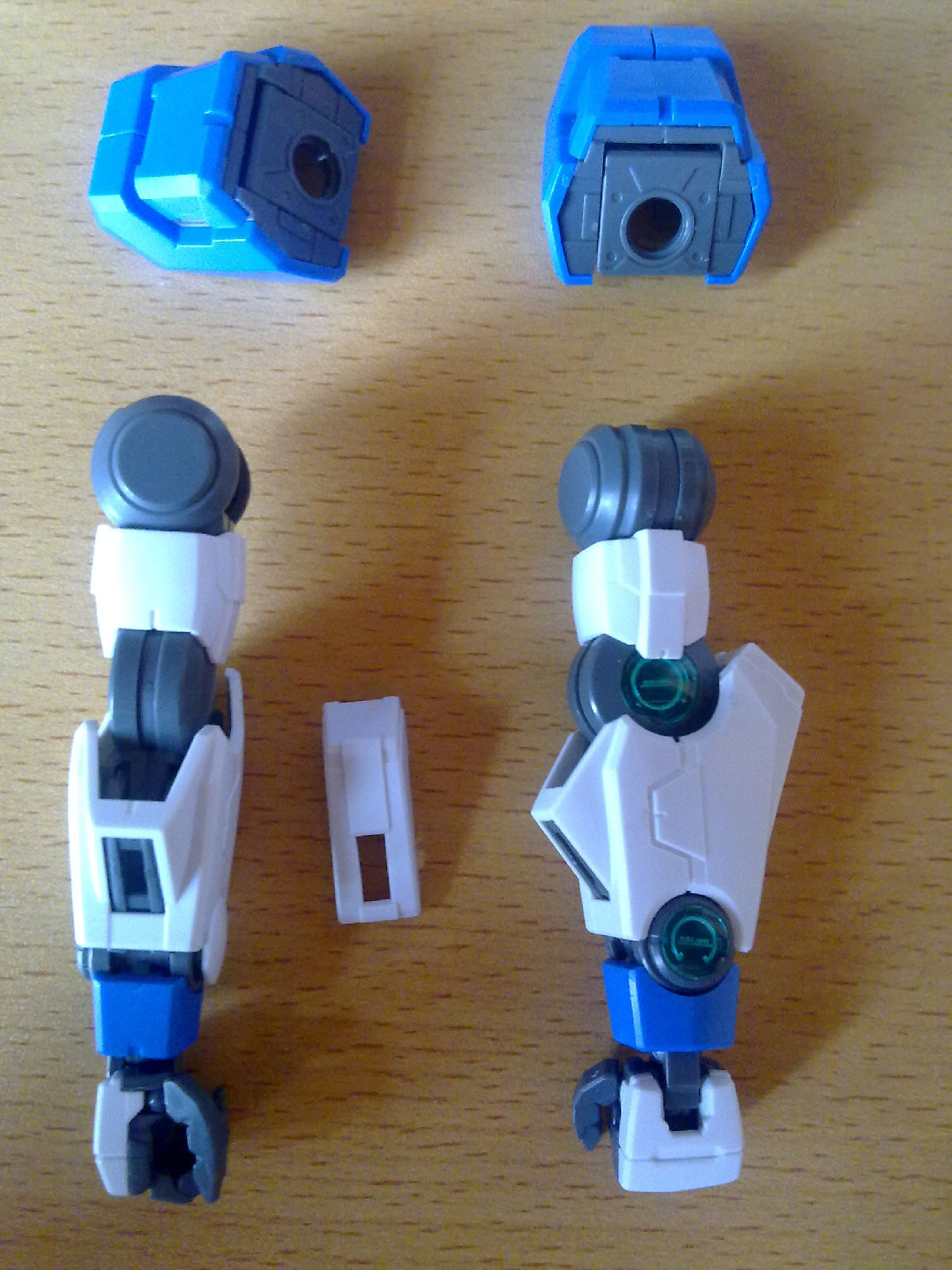 5,腿部内构依旧很完整,细节也说得过去,完全没有萝卜腿的感觉,GN电容部分很出色,不过大腿根部的装甲在转动腿关节的时候会和内构冲突。(这个很难说清楚,就是大腿根部的零件和外甲有点冲突,这个明显是设计上的问题= = 不过影响并不大,转动大腿的时候顶多是会把装甲顶开一条缝),没有滑动装甲的设计让人有点遗憾,不过很好的还原了设定,还是不错的。 评分:85