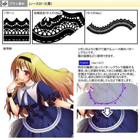 附图中的蕾丝是默认就有的,至于更多的素材,请看贴吧的顶置贴,里面有下载。