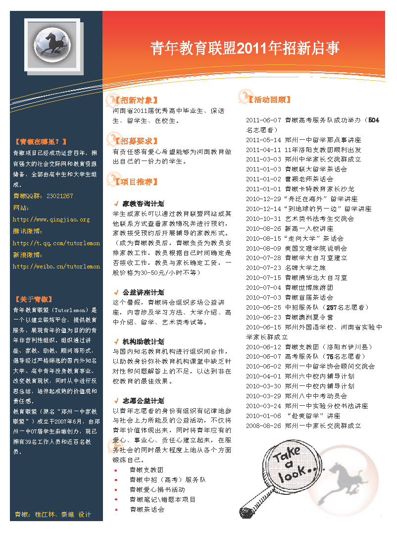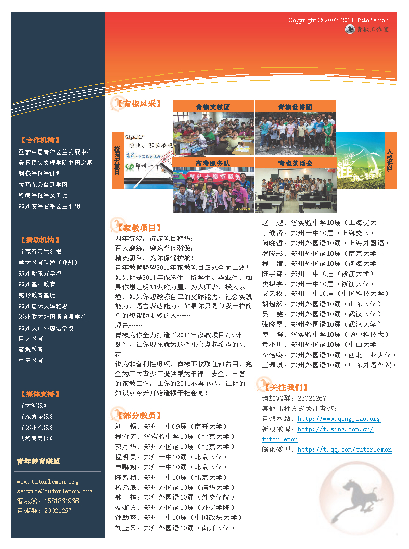 11届毕业生注意:青椒暑假将会招募家教、工作团队并推出支教、捐书、笔记、讲坛、茶话会等众多教育类社会实践项目,请加群:23021267进行关注!