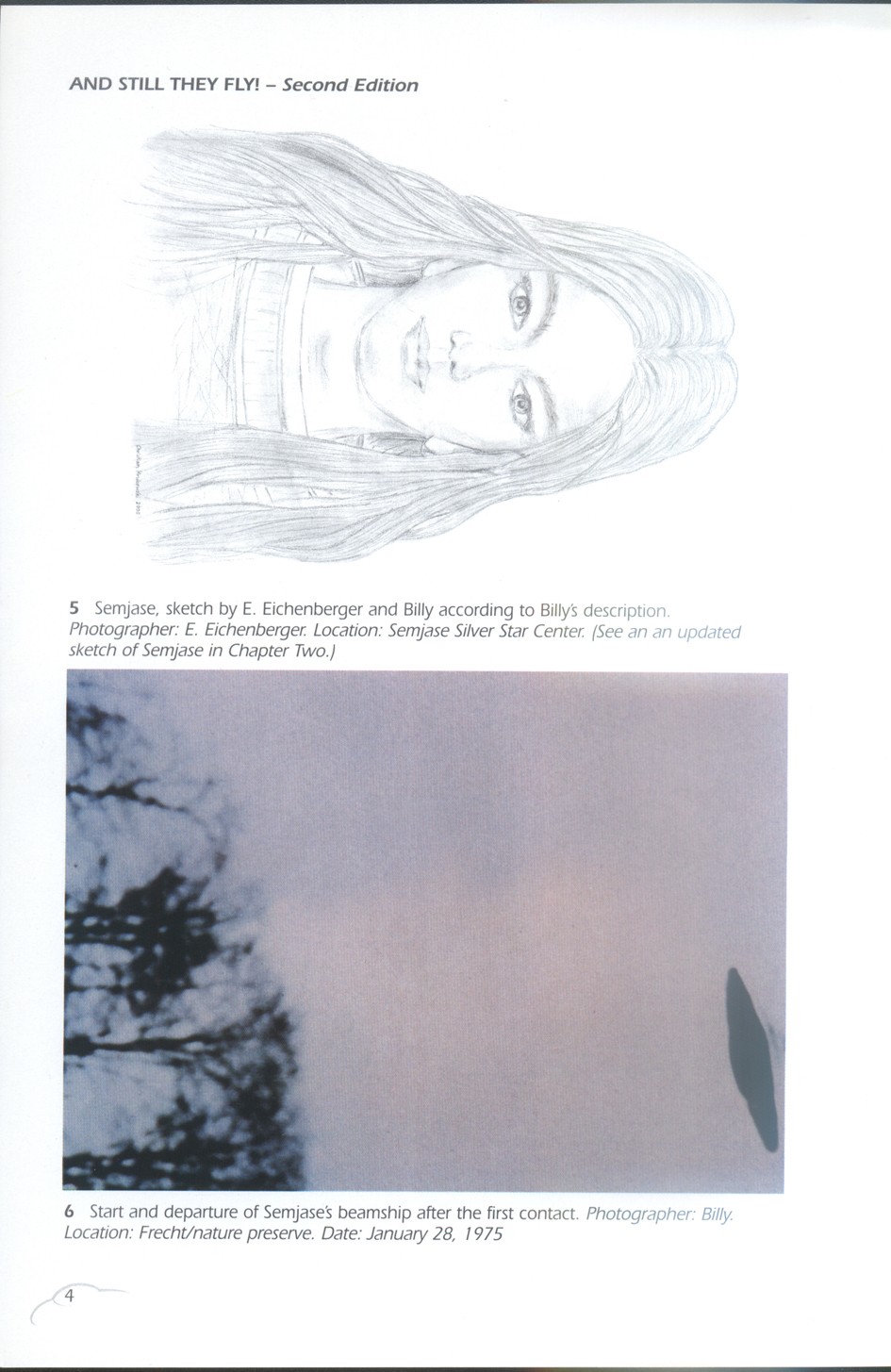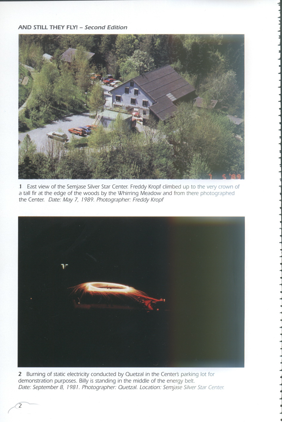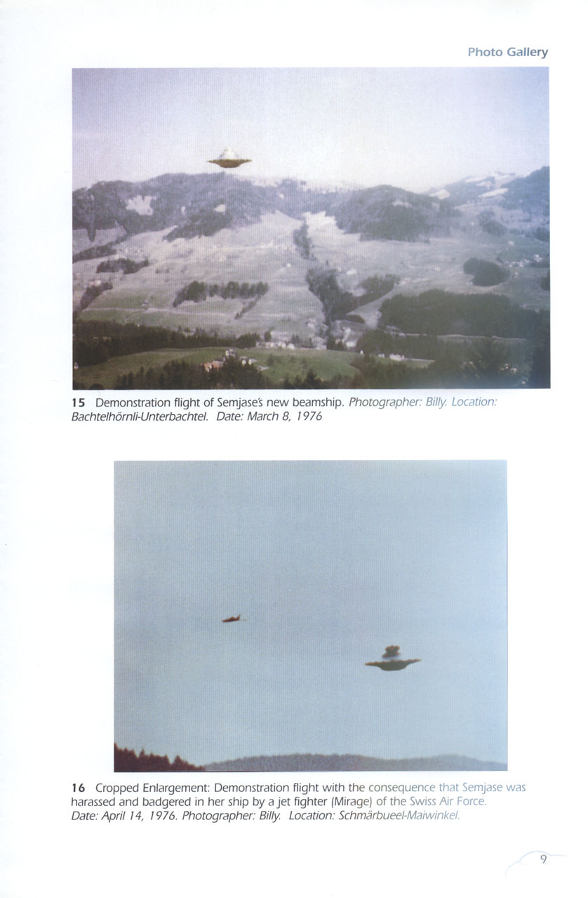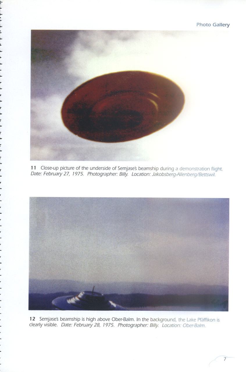 第二张图,飞碟在树前面,树的大小和飞碟实际大小,有脑子的就能想出来。这如果不是比利扔出的一个用于拍摄的模型,那就是小人国来的外星人