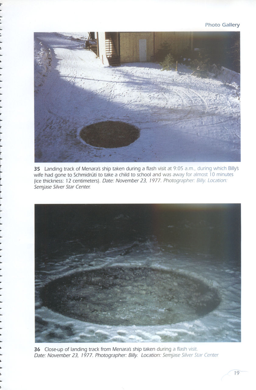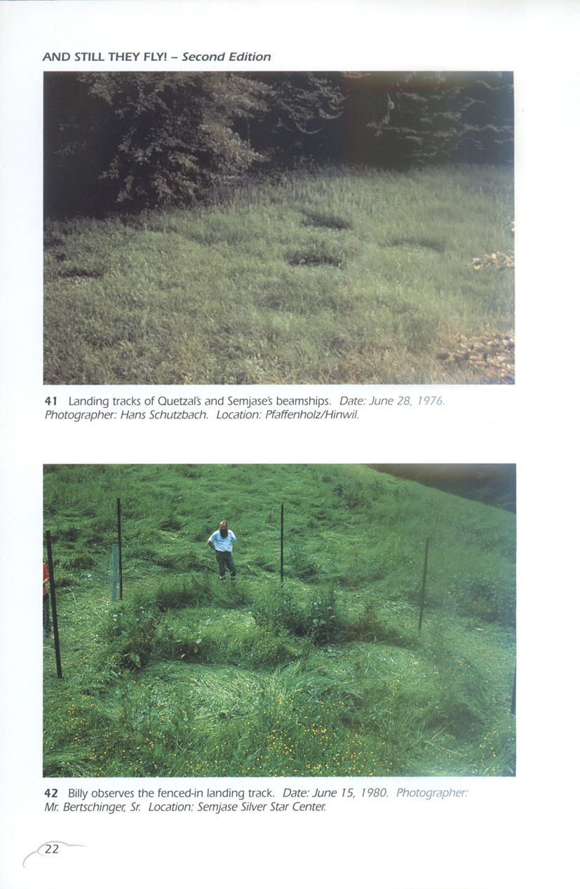 从这个图可以看出比利还是极力想要向世人展示外星人的,不然他往草边上放那么多保护设施干嘛?还不是为了向大家证明真有外星人拜访过他?但,这里有一点解释不通,直接展示飞船不更直接?他的这种心虚的做法恰恰说明了他的造假