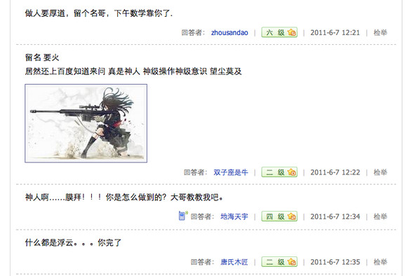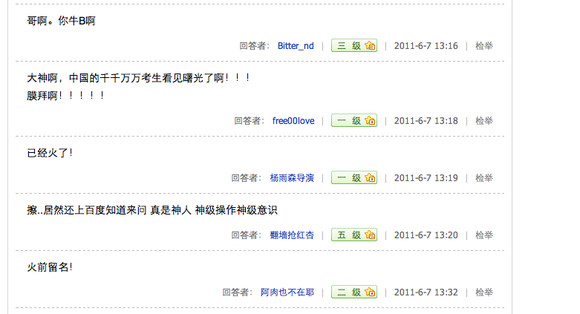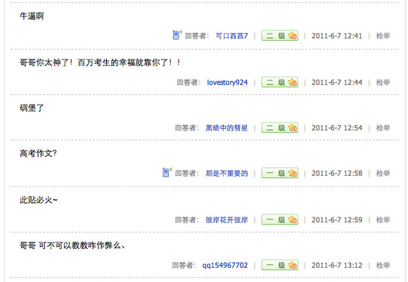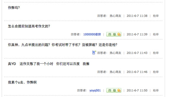 总有些喜欢装的人嘛,知道了作文题上百度显摆显摆,让别人以为他很牛B,连高考都可以作弊……