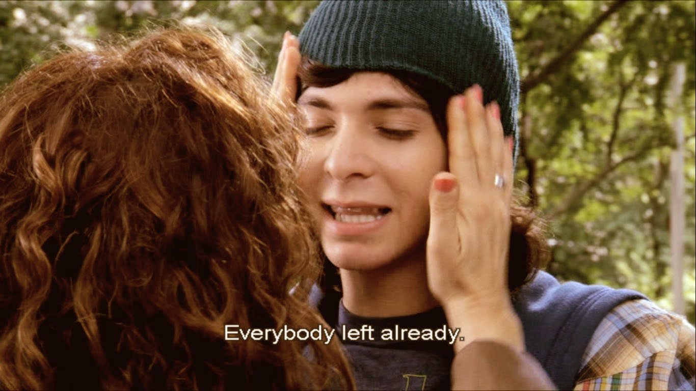 请注意右上角,我们可以确定,拍摄这部电影时,哈利波特第六集正在美国上映......(dvd真的很清晰.....XD)