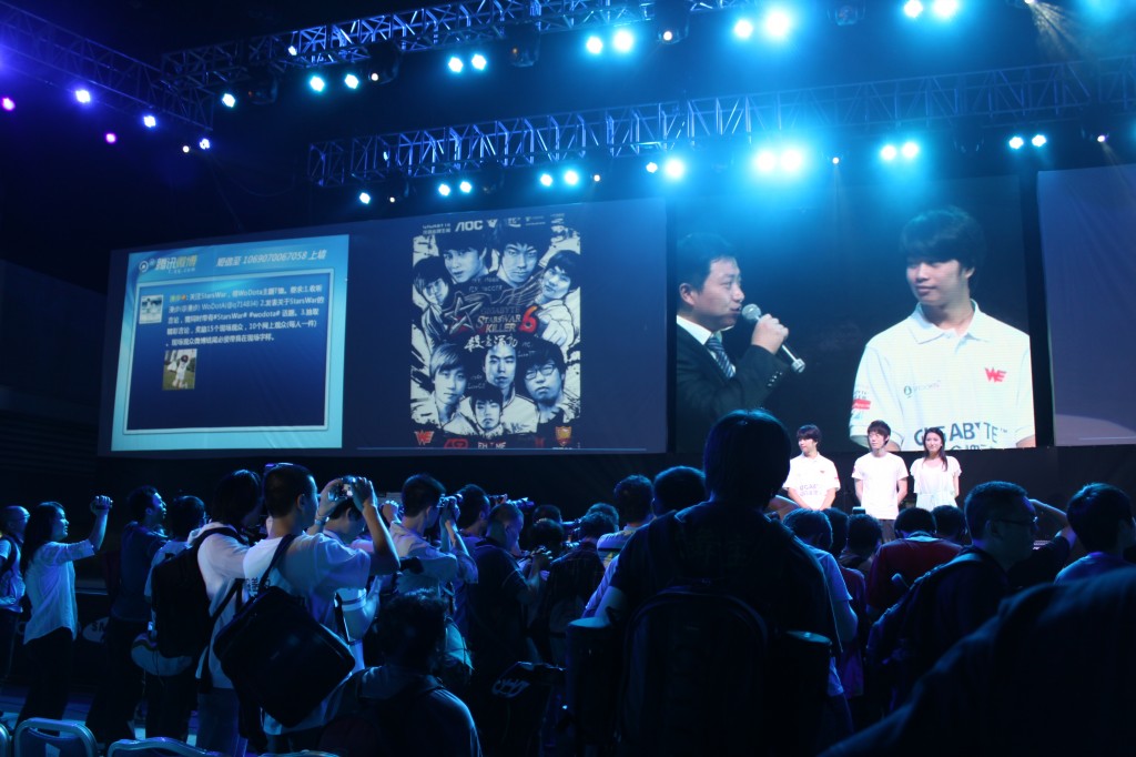 今天是SW6第一天,很早就准备去了,之前没弄到票,直接到正大广场比赛现场。看到工作人员在发票,过去一打听现场不买票的,没票的直接回去吧。 悲剧了,然后托朋友找关系弄了两张票出来,我问从哪里来的呀。 朋友说 小Y那里拿的,一个魔兽解说,很出名的,你认识不?