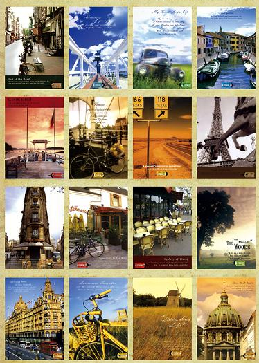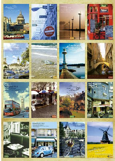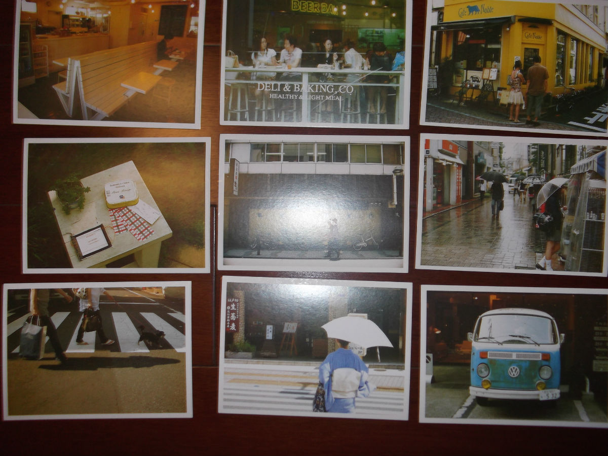 (太匆忙,中间反光的那张是两个人并排漫步)因为这套只剩这几张有绿斑点的,寄出去的有些就不是这套里的,看图会发现大多数是一种更小规格的……不过只小了一点,而且自认为正面很好看