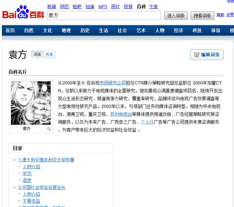 做贴吧大全时,想给大师兄抢占一个角色介绍的位子,结果发现袁方的百度百科是如下内容: