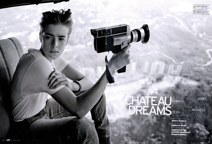 Artist, director, actor, author – is there any creative career James Franco hasn’t tried his hand at in recent years? Hollywood’s favorite multi-hyphenate seems keen on testing his skills in numerous arenas so it is unsurprising to see him giving fashion photography a go. In the newest Elle Franco shoots Agyness Deyn as a latter day James Dean (Deyn also styles the shoot) while Natalia Bonifacci plays Sal Mineo in Franco’s gender-bending tribute to Rebel Without A Cause.