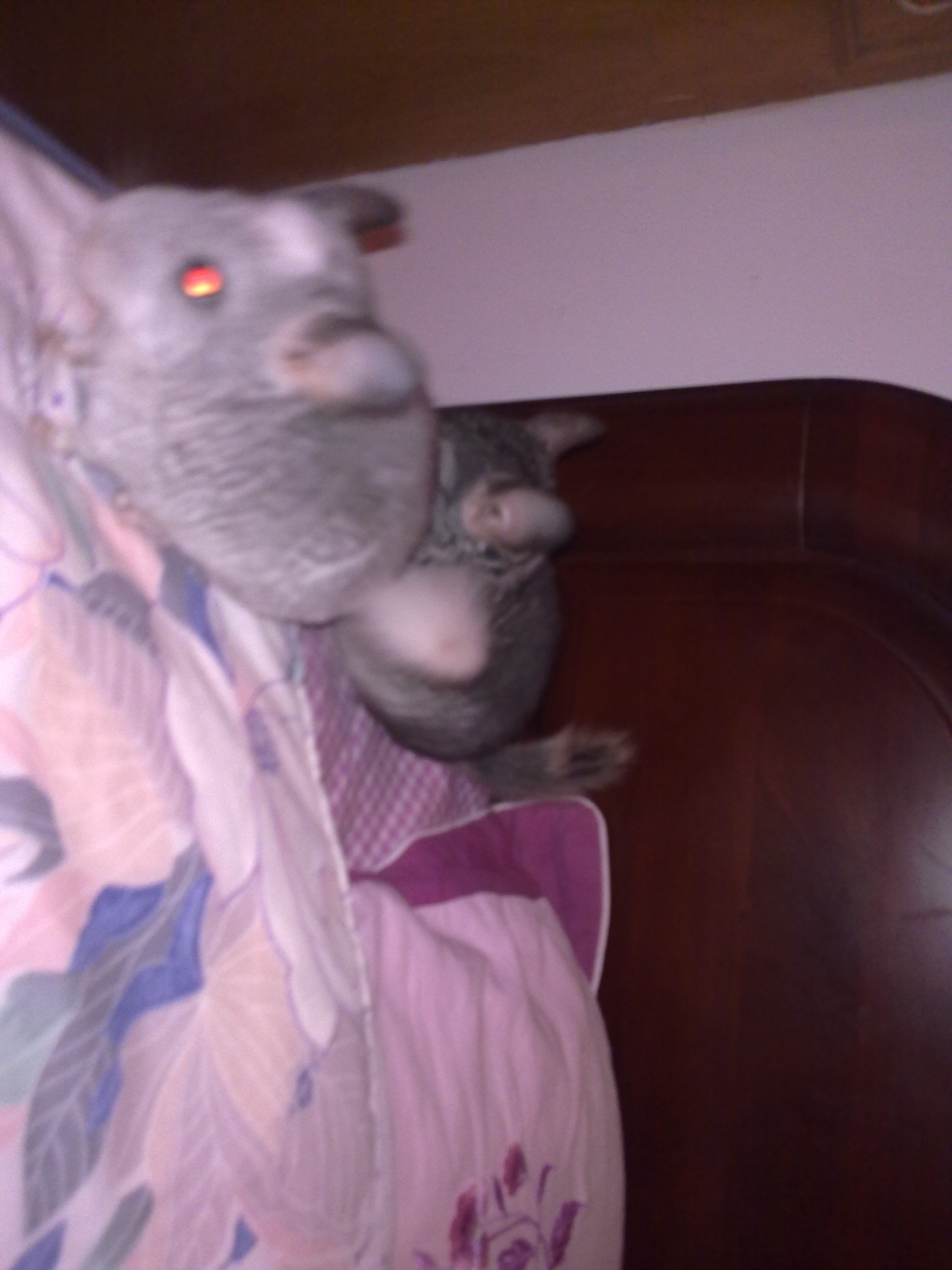 嘿嘿 说主题,由于猫猫断奶晚(也是我惯着)...三个月才跟他们老妈分开,所以现在的体重有点...老大标灰,目前体重362g,老二银斑,目前体重383g...可能是老大让着吧,老二发育的一直比较不错...不过老大可横了,跟他爸老打架...一放风主要得看着点他们俩...不过受伤的100%都是他老爹...两只小猫一个字就能形容..."巨闹啊"