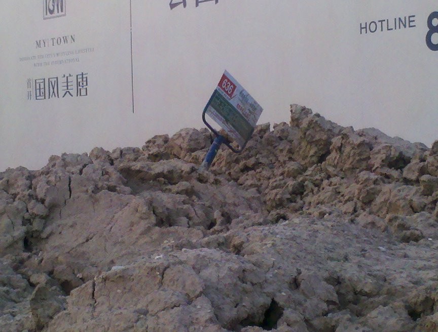 这个就在我们小区门口给力吧。这站台都给堆成山了。每天只要车一过就灰土杨天