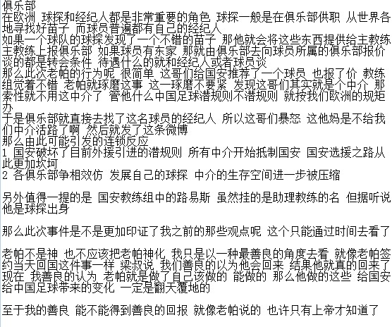 经济人第二条在微博感谢了一下其他俱乐部领导给他打电话安慰他这件事,呵呵。